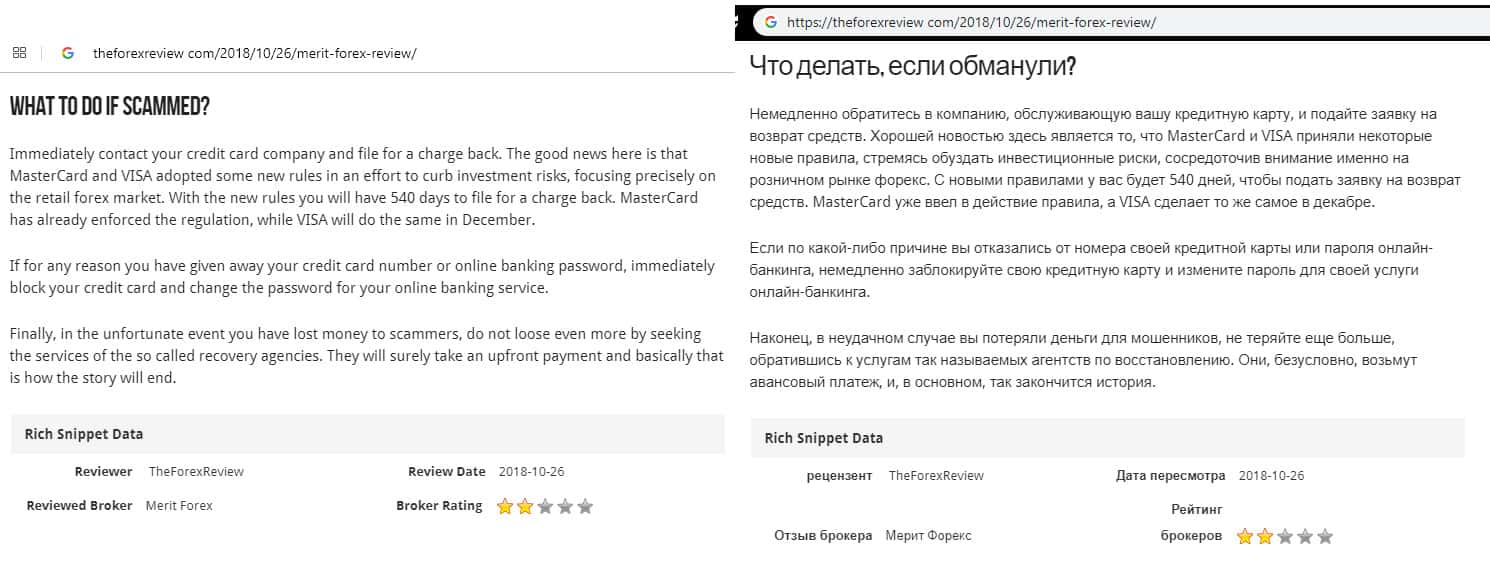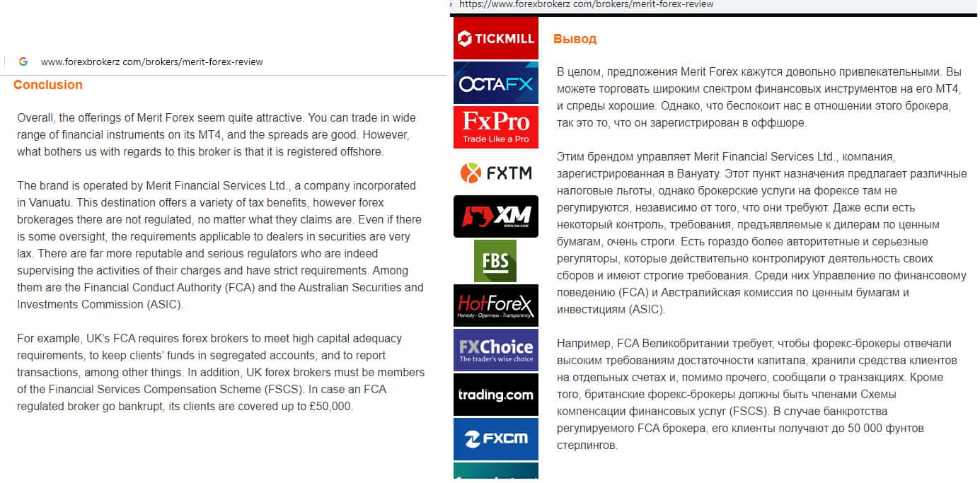 Ссылки на источники, которые использовались в написании материала о конторе MeritForex