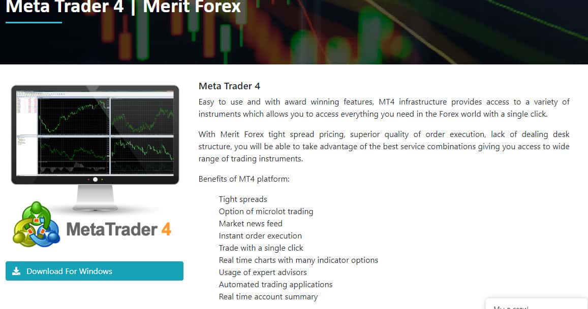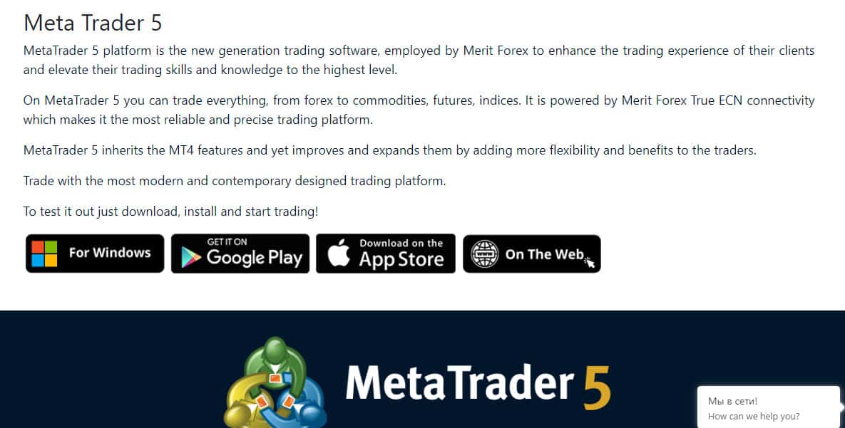 - Также контора MeritForex предлагает торговать через MetaTrader 5