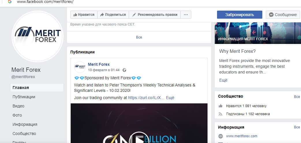 Каждая форекс-контора, любыми путями, пытается привлечь к себе внимание и таким образом им приходится держаться поближе к людям, а именно в социальных сетях. В Фейсбуке конечно они смогли насобирать 1000 подписчиков, но это не те цифры, которые характеризуют международного брокера. Берегитесь их и знайте ссылку на группу facebook com/meritforex
