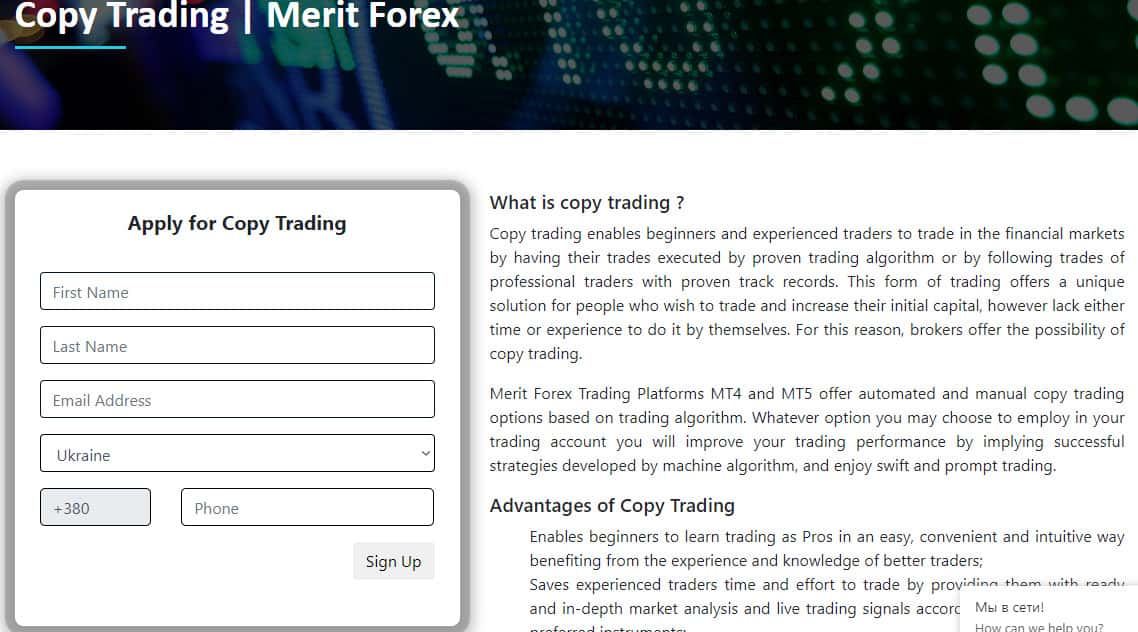 Для тех, кто вообще не знает как торговать, да и вообще не хочет в этом разбираться, мошенники Мерит Форекс предлагают воспользоваться сервисом копирования сделок. Понятное дело, что большая половина это сливные позиции, поэтому все что вы приобретете в этом случае - так это дырку в бюджете.