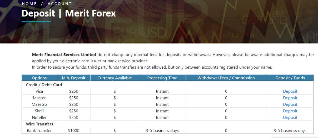 Ужасные условия пополнения счета в кухне Мерит Форекс