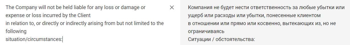 Ограниченную ответственность за свои действия, мошенники MeritForex предоставляют как спецификацию ответственности и в ней сказано, что существует множество ситуаций, в которых контора не будет нести ответственность за любые убытки или ущерб, которые клиент понесет при сотрудничестве с ними.