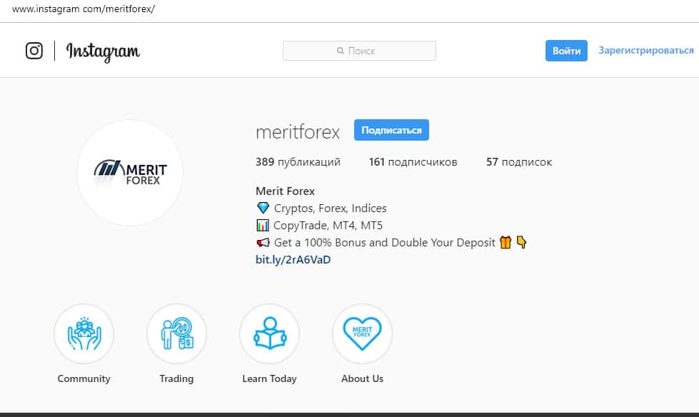 Чтобы не быть голословным об их неудачной деятельности в социальных сетях, следует отметить, что в Инстаграм, шарага MeritForex также не смогла собрать и 200 подписчиков. Кому они создают публикации - не понятно. Но с таким приходом, лохотрон долго не протянет. Ссылка на аккаунт instagram com/meritforex