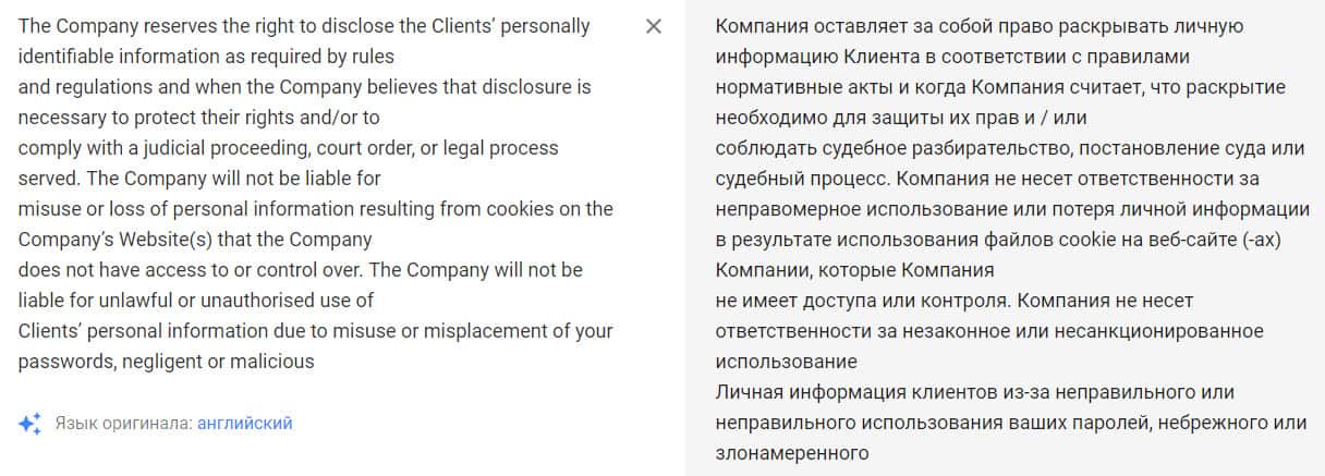 Что касается политики конфиденциальности, то сразу же стоит отметить, что мошенники Мерит Форекс используют данные документ себе в выгоду, а также дают себе право раскрывать личную информацию о клиентах третьим лицам и не указывают конкретно в каких ситуациях они собираются это делать.
