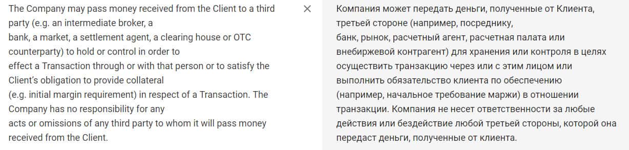 Все что нужно знать о документе где мошенники MeritForex предупреждают о рисках - это то, что они имеют право передавать деньги клиента третьей стороне и указывают, что таким образом может возникнуть риск потери средств. Этим пунктом контора снимает с себя ответственность за любые неправомерные действия со стороны этих третьих лиц.