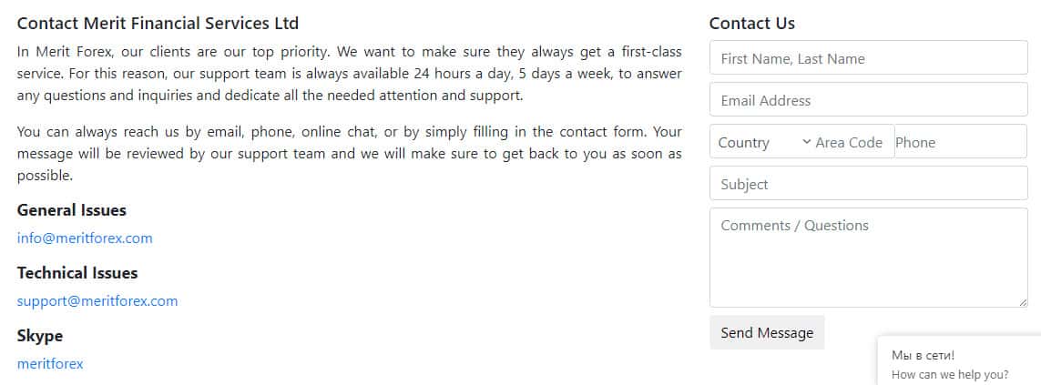 Для того, чтобы можно было связаться с шарлатанской организацией Мерит Форекс, мошенники предоставляют на своем сайте некоторую информацию в виде электронных почт, скайпа и адресов. Шулера используют это для того, чтобы как можно лучше войти в доверие к своим клиентам. А теперь по порядку все контакты: