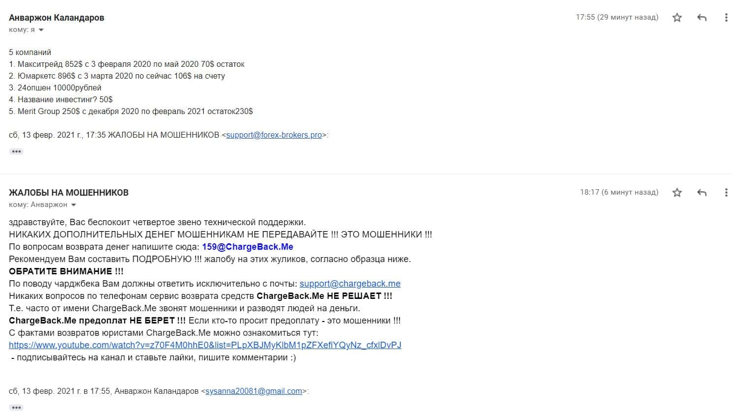 На почтовый адрес сайта по сбору информации о деятельности мошенников Форекс пришла жалоба на аферистов Мерит Групп, в том числе Макси Трейд, Юмаркетс и 24 Опцион.