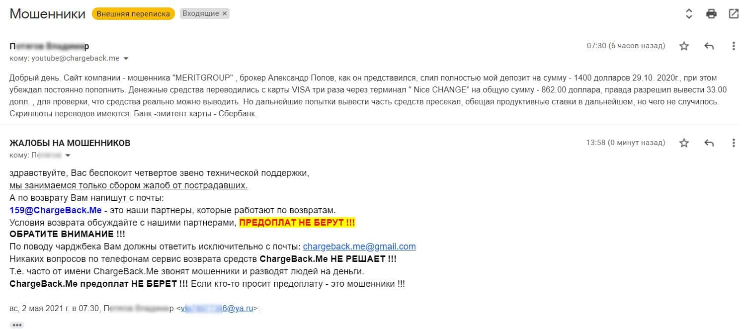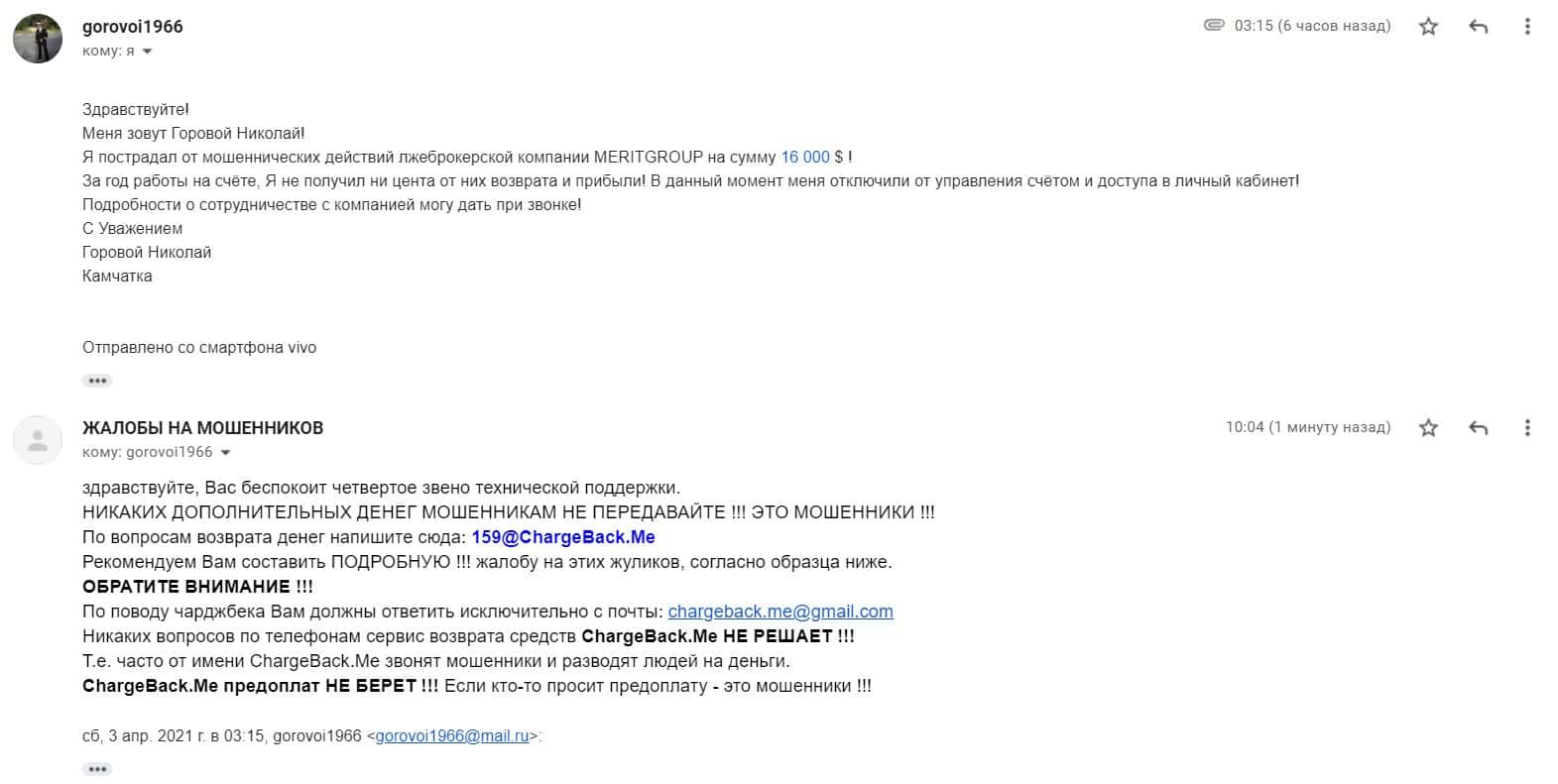 В данном разделе предлагаем увидеть информационный материал в виде жалобы на лохотронщиков Мерит Групп, которые развели клиента на 16 000 $ США.