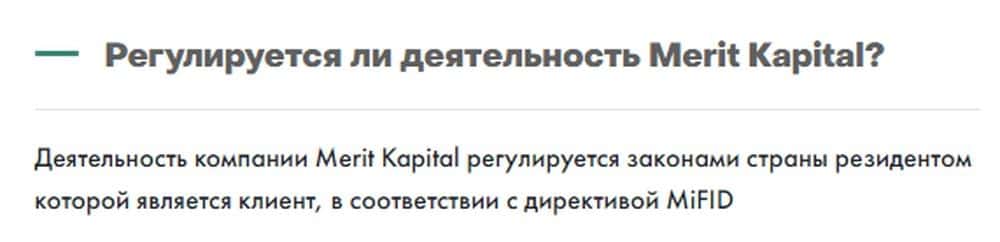 На сайте проходимцев Мерит Групп есть бессвязное сообщение о том, что их деятельность якобы регулируется законом страны клиента. Конечно просто чушь рассчитанная на новичков.