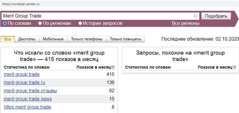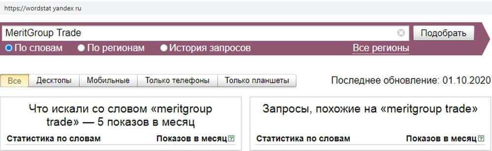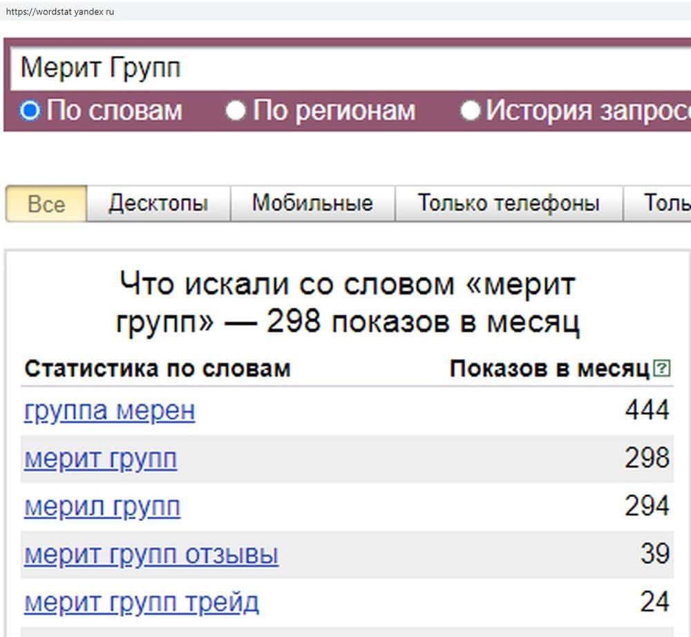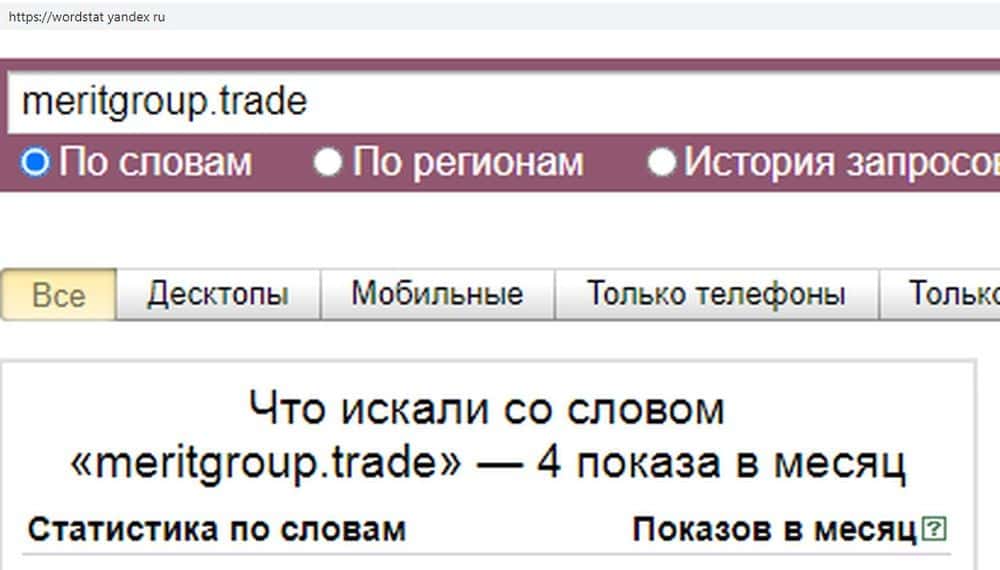 - Насколько популярны мошенники MeritGroup Trade среди пользователей Яндекс