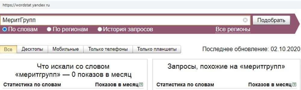 Но мошенников Мерит Групп опытные трейдеры старательно обходят стороной - ведь на сайте нет вообще никакой информации о липовом брокере. По запросу "МеритГрупп" показов 0.
