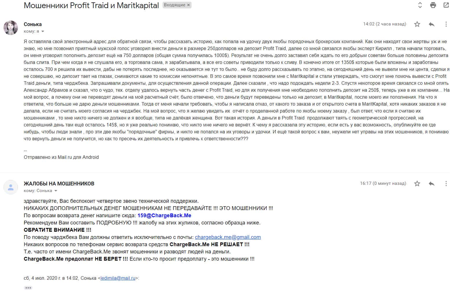 На почтовый адрес сайта по сбору информации о деятельности мошенников форекс пришла жалоба о том, что скам-брокер Мерит Капитал работает в одной связке с Профит Трейд.