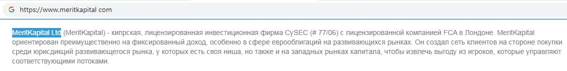 Отзывы о фейковой конторе MeritKapital, ныне присутствующие в интернет-сети