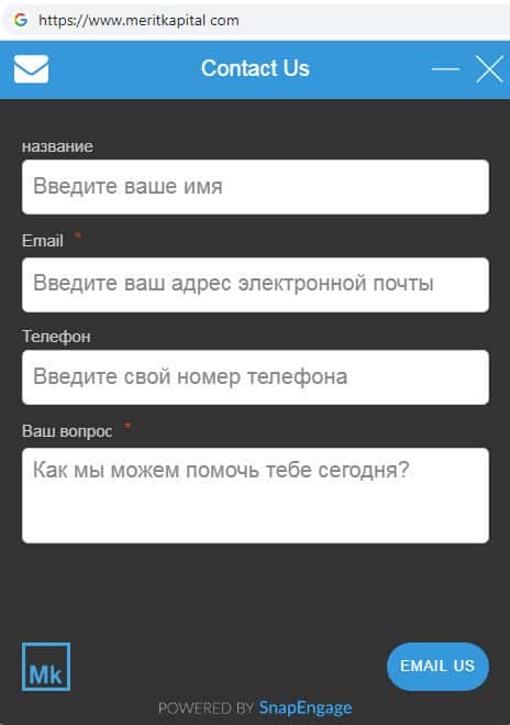 Так же представители конторы MeritKapital предоставили в качестве обратной связи онлайн-чат, при помощи которого ведут сбор данных о клиенте, фиксируя все данные на сайте.