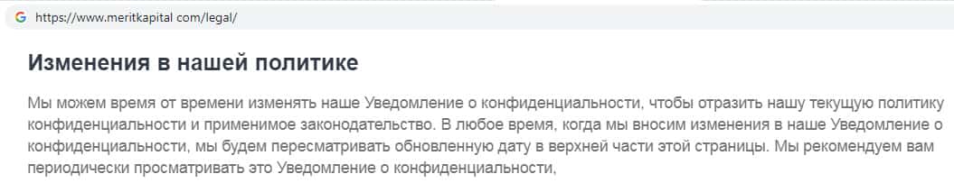 Мошенники MeritKapital имеют право изменять правила пользования сайтом без предварительного уведомления об этом пользователей сайта.
