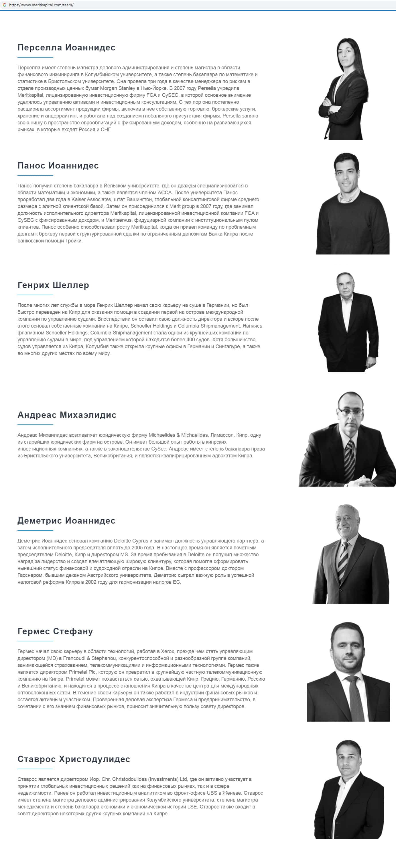 Шулера Мерит Капитал предоставляют вероятно фальшивую информация о руководстве, но точно знать о том, кто руководит скам-проектом мы не можем.