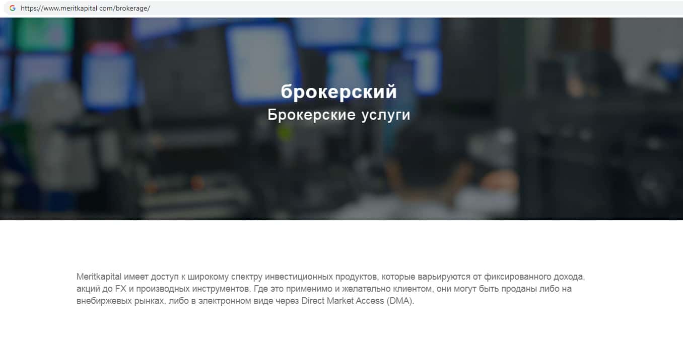 В данном разделе предлагаем увидеть скрин главной веб-страницы ресурса мошеннической организации MeritKapital, помните о том, что такие проекты очень быстро скамятся.