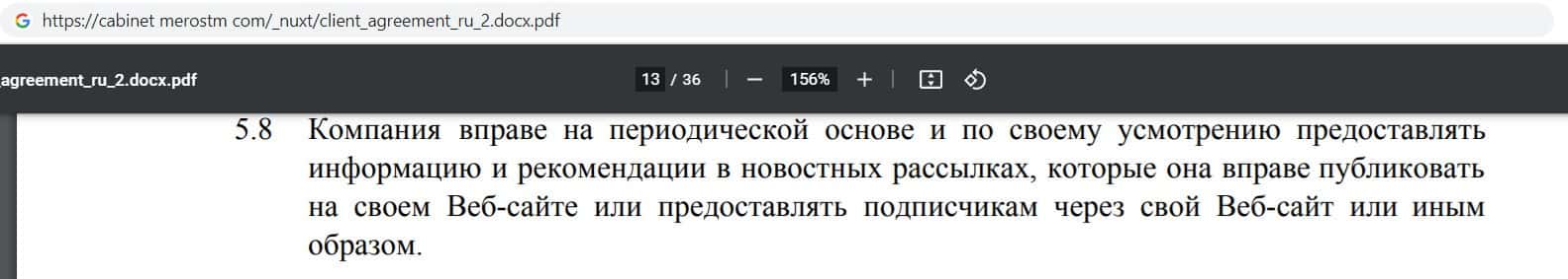 Так же вашему вниманию мы предоставляем полное клиентское соглашение финансовых аферистов MerosTM для более подробного ознакомления со всеми пунктами документа.