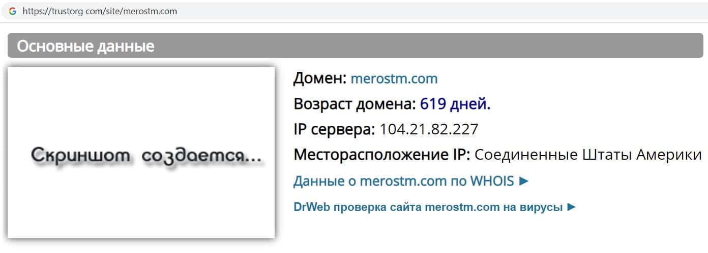 Информация о возрасте главного сайта шарашкиной конторы Мерос ТМ