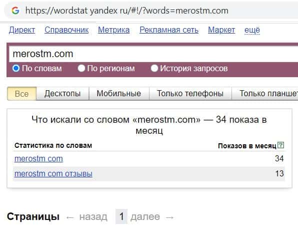 wordstat yandex ru - количество брендовых запросов в Яндексе