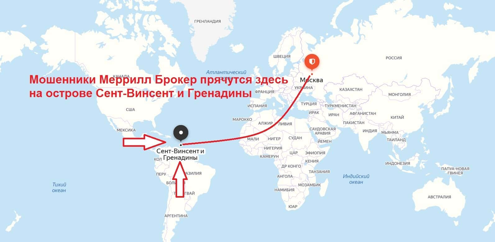 Местом регистрации данного интернет-лохотрона под названием Меррилл Брокер является один из оффшоров на острове Сент-Винсент и Гренадины.