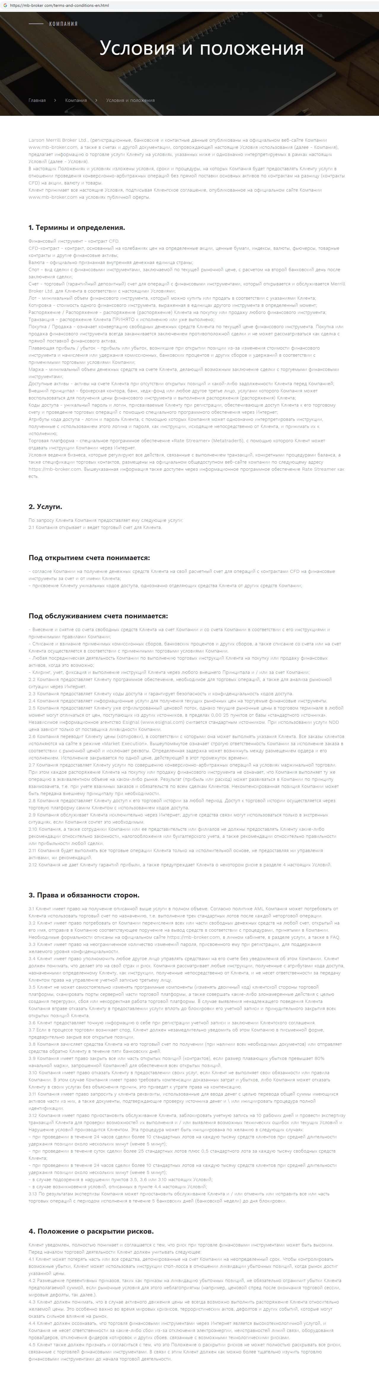 Клиентское соглашение на веб-сервисе скам-конторы Меррилл Брокер