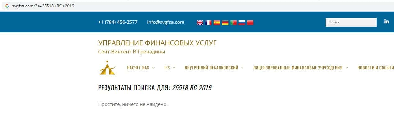 На официальном сайте финансового регулятора Сент-Винсент и Гренадины svgfsa com информация о регистрационном номере компании Меррилл Брокер отсутствует.