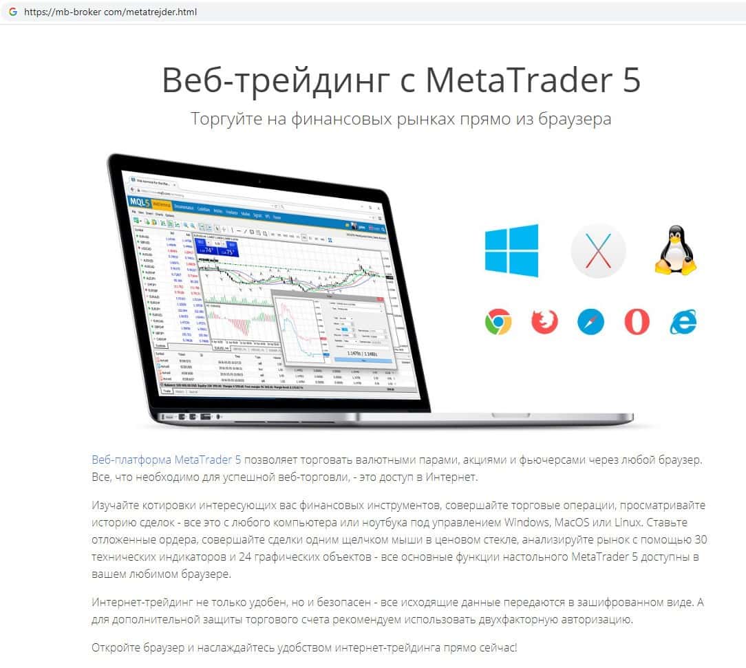 Торговая платформа на онлайн-ресурсе псевдо-брокера MB Broker