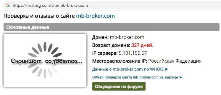 - Информация о возрасте домена скам-организации MB Broker