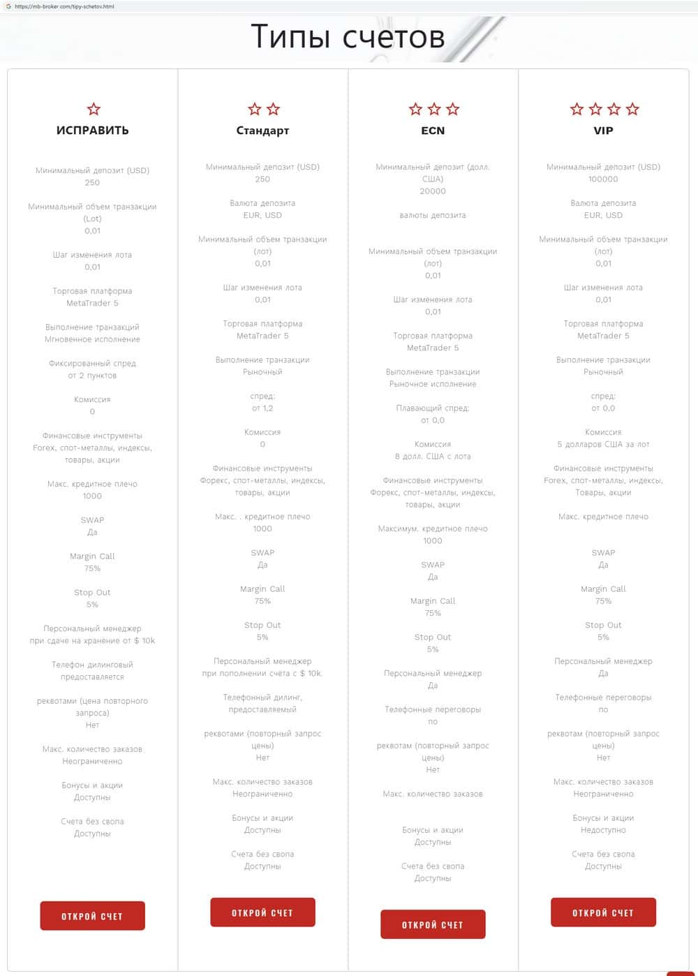 - Типы торгового счета на интернет-портале шараги MB Broker