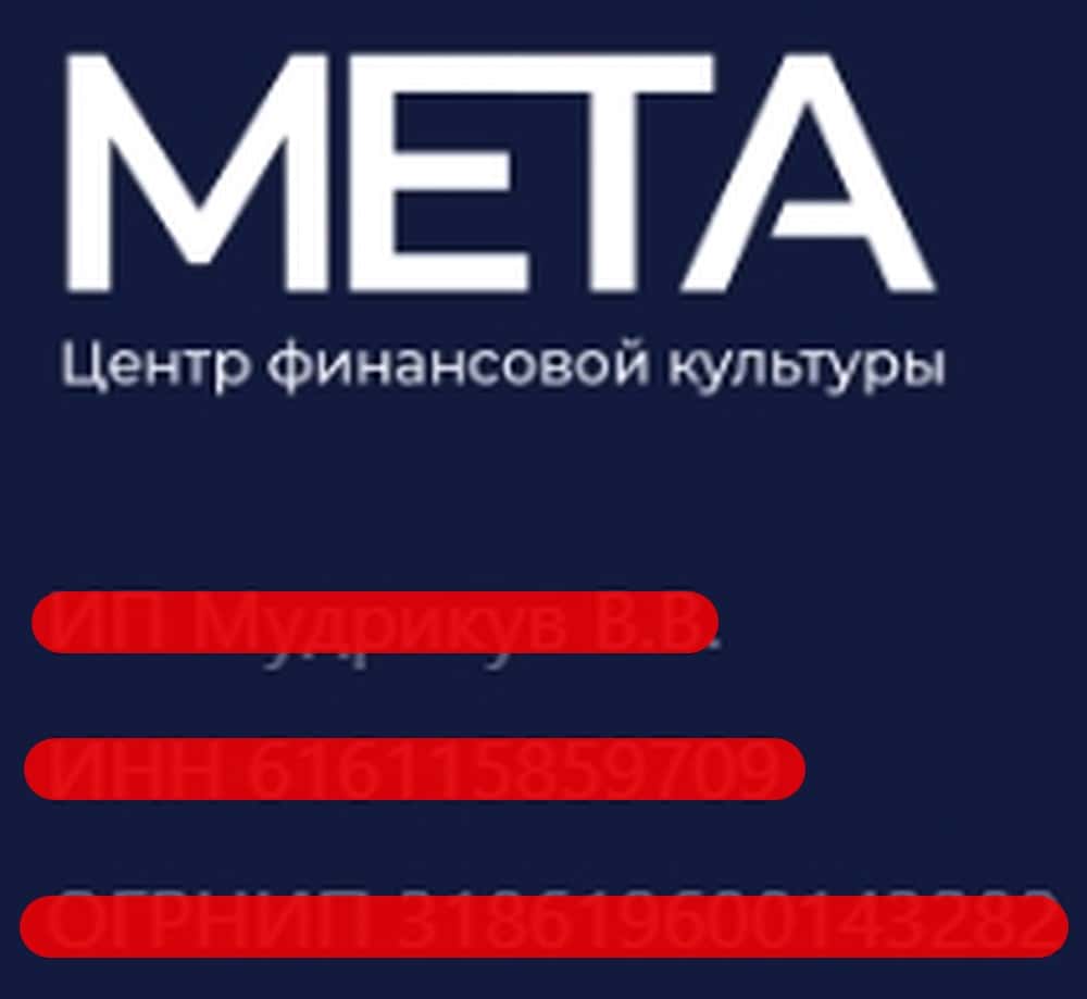 Не смотря на то, что жулики МЕТА Центр финансовой культуры указали некоего индивидуального предпринимателя в качестве юридической подоплеки, это может быть фейк.