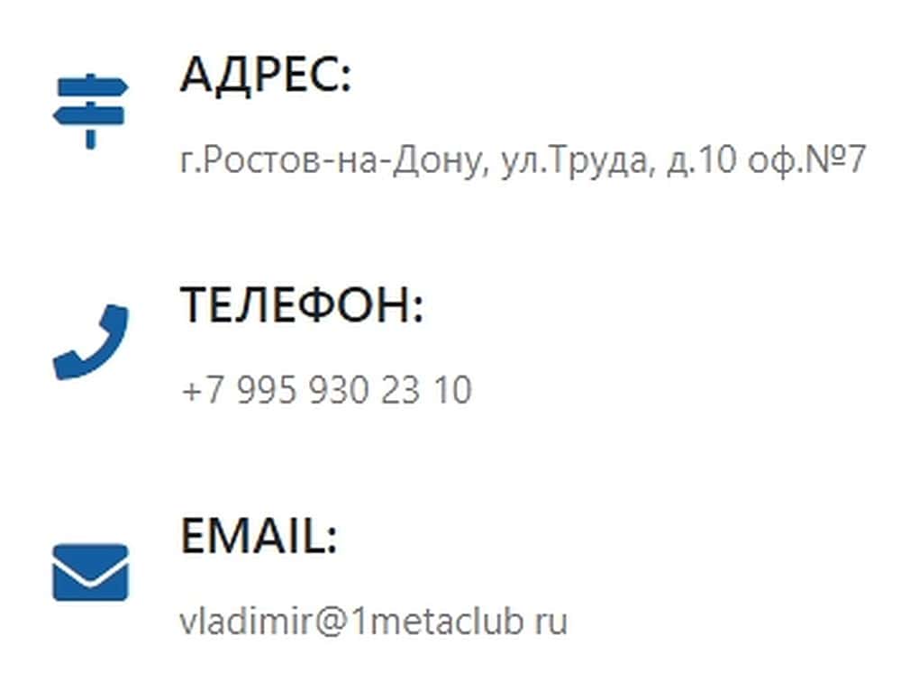 Вот какие данные авантюристы МЕТА Центр финансовой культуры предоставили своим пользователям для обратной связи - это почта, телефонный номер и якобы адрес аферистов: