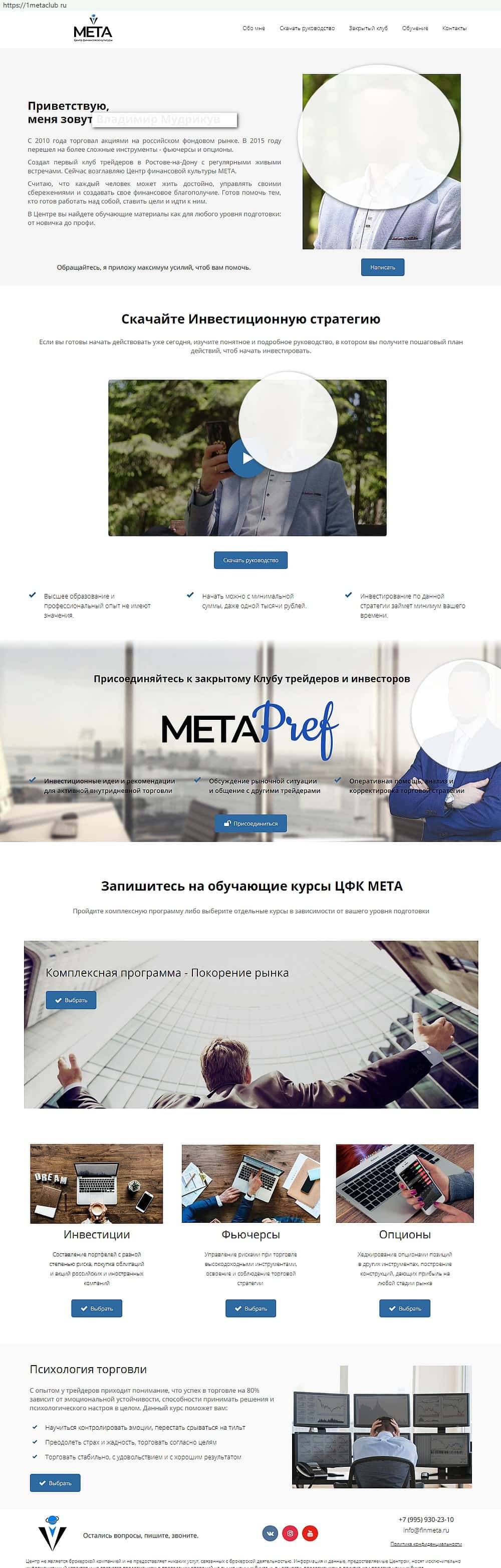 Как выяснилось, у шулеров МЕТА Центр финансовой культуры имеется второй сайт, который привлекает жертв на этот недопроект. Запомните его интернет-адрес 1metaclub ru!