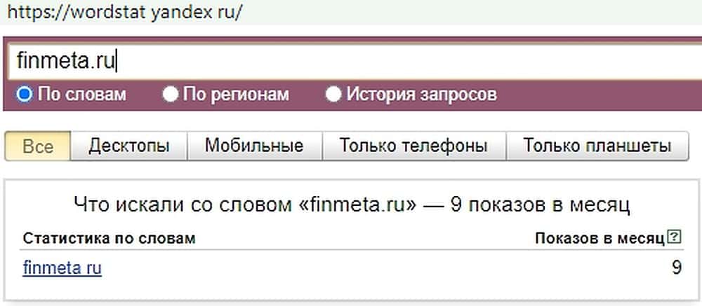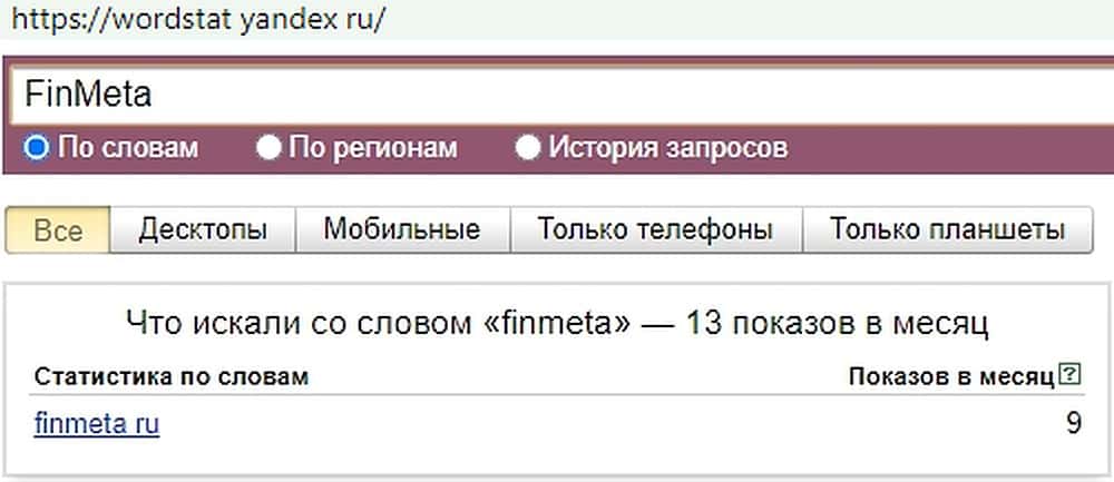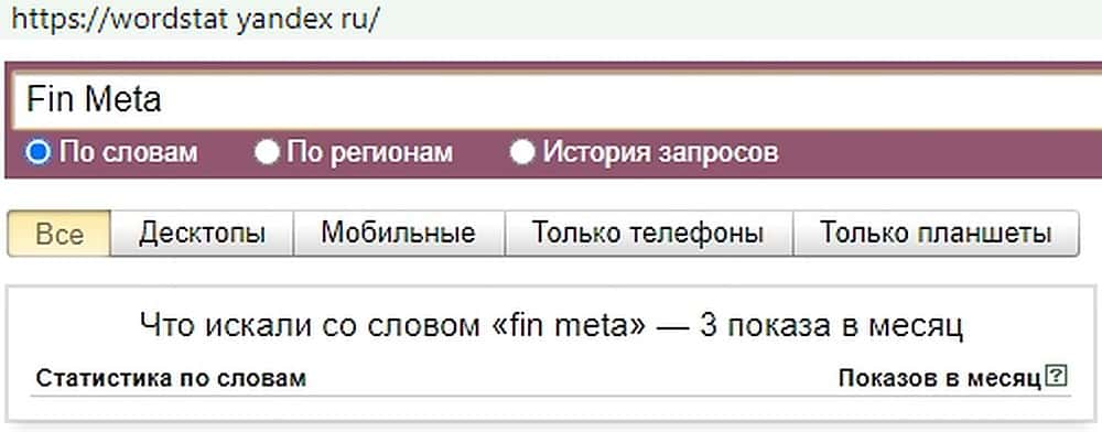 Как часто ищут пользователи Яндекс шарашку FinMeta Ru?