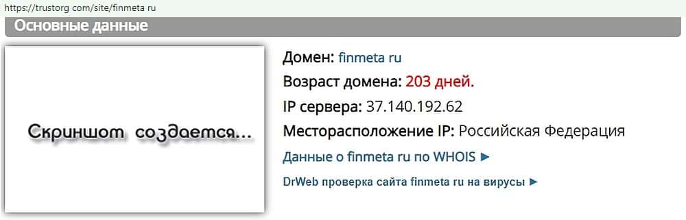 Откуда поступает поток жертв на недосайт кидал finmeta ru, выяснить не удалось. Просто сайт жуликов настолько молод, что аналитические сервисы его еще не успели просканировать.