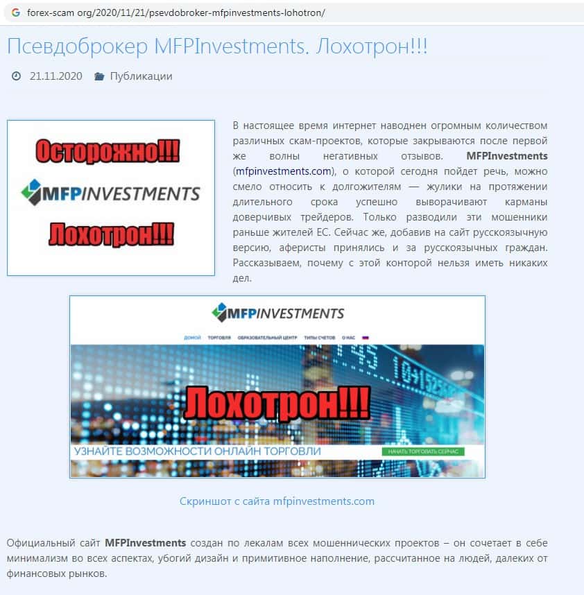 - Мнения относительно мутной конторы МФП Инвестментс на разных веб-источниках