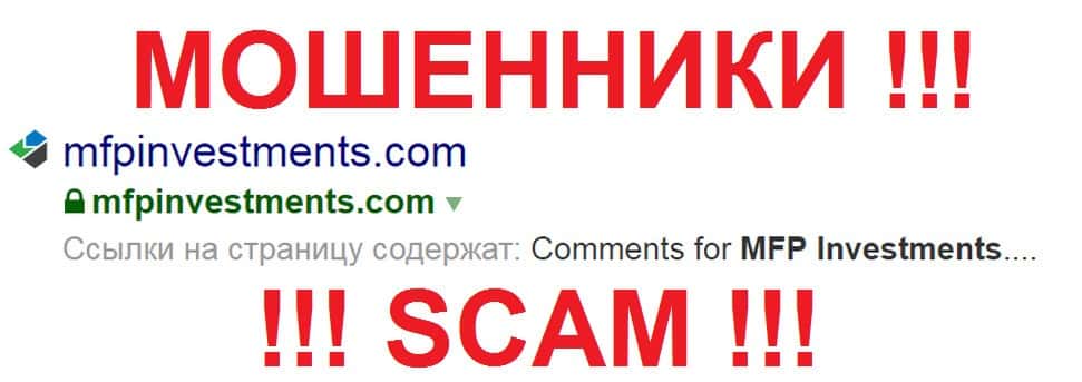 Использование услуг конторы МФП Инвестментс может привести к убыткам, потери бизнеса и упущение выгоды! Аферисты не гарантируют достоверность предоставляемой информации!