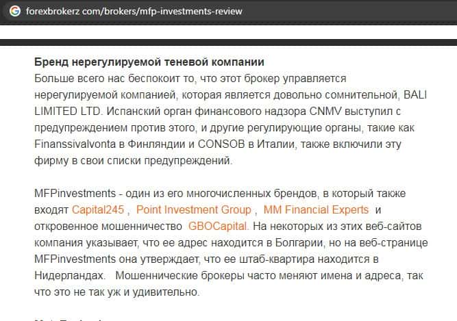 Мнения относительно мутной конторы МФП Инвестментс на разных веб-источниках