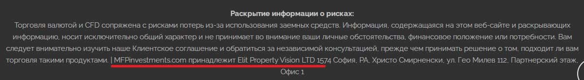На официальном сайте лживой конторы МФП Инвестментс указана информация, что их юридически ответственным лицом является компания Elit Property Vision LTD.