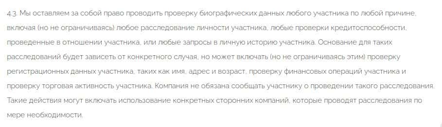 Жулики МФП Инвестментс имеют право проводить частные проверки любой информации пользователя без предупреждения! Проводят такие проверки мутные сторонние компании!