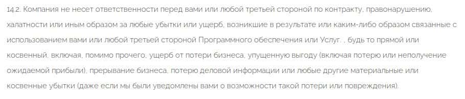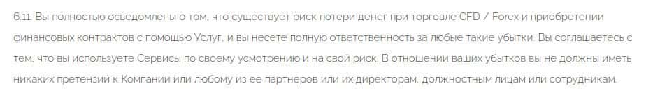 В пользовательском соглашении шарашки МФП Инвестментс, мошенники неоднократно перекладывают всю вину за потери и ущерб на личную инициативу пользователей!