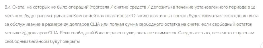 Если счет пользователя по каким-либо причинам был неактивен в течении года, с него будут взимать дополнительную плату в размере 25$. Либо вообще обнулять неактивный счет.