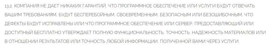 Как можно доверять свои деньги лохоконторе, которая в договоре уведомляет клиентов, что не дает никаких гарантий обеспечения качественных услуг? Что тогда они вообще могут?