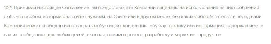 Следующий пункт договора шараги МФП Инвестментс говорит о том, что все ваши сообщения/обращения администраторы не обязаны читать или давать ответную реакцию!