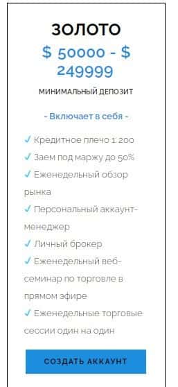 Лохотронщики МФП Инвестментс предлагают вкладывает еще больше в счет "Золото". Здесь минимальный депо 50 000-249 999$, кредитная маржа до 50% и личный брокер-аферист!