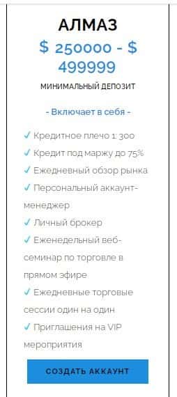 Что же мошенники МФП Инвестментс могут предложить клиентам за 250 000-499 999$? Счет включает в себя: кредитное плечо 1:300, кредитную маржу до 75% и кучу лжепомощников!