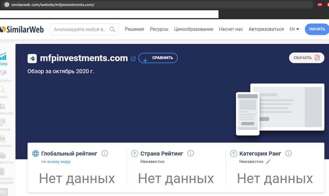Мошенническая контора МФП Инвестментс не имеет конкретной популярности в сети. Так как онлайн-программа даже не может индексировать источники трафика данного сайта!