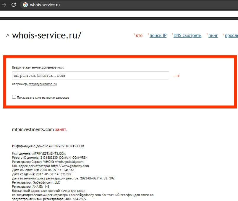 - Что известно о владельцах домена шарашки MFPInvestments?