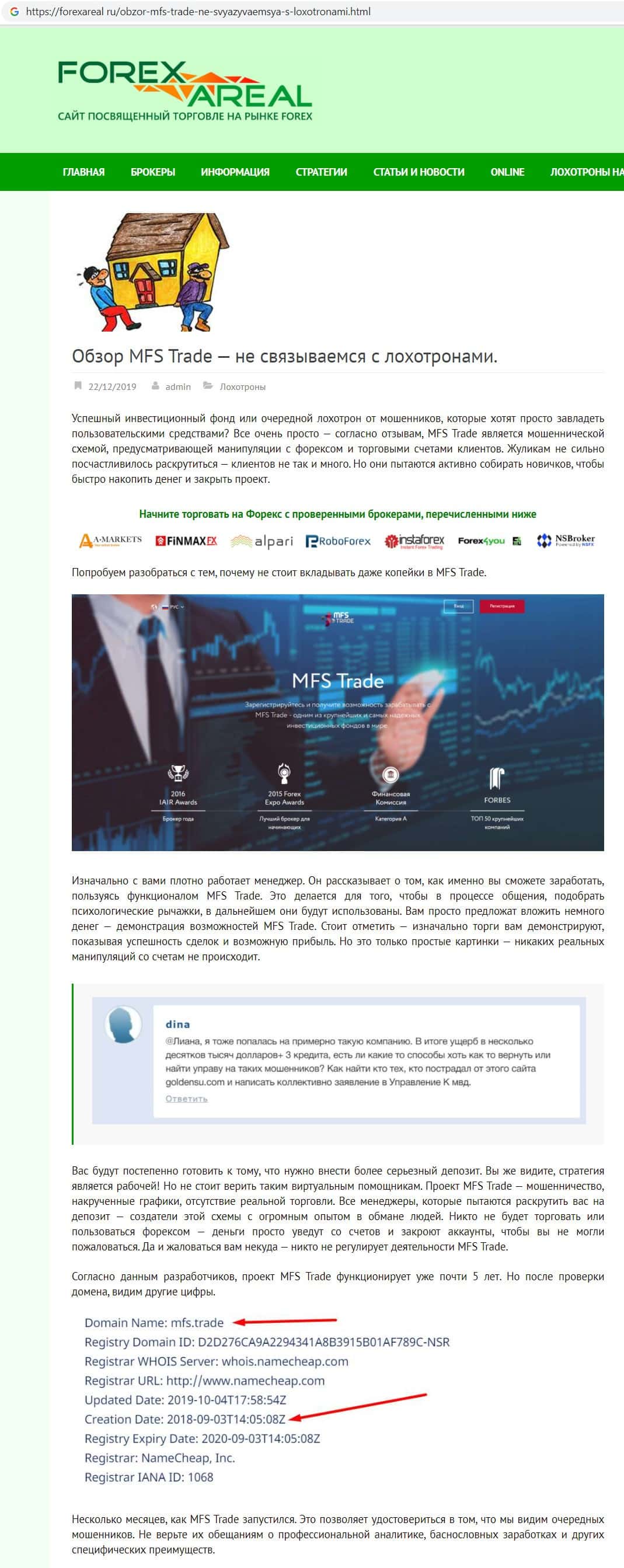 forexareal ru - сайт с отзывами о информацией о махинаторах МФС Голд