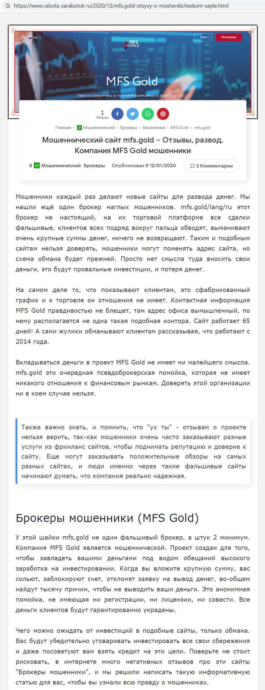 rabota-zarabotok ru - информация о проекте аферистов MFS Gold